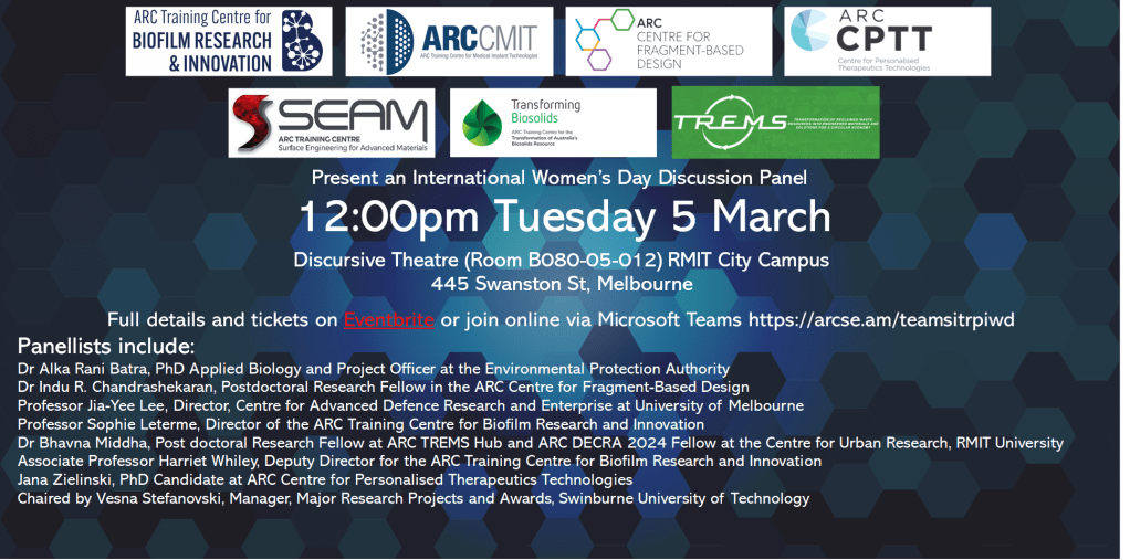 CFBD joins forces with its Australian Research Council Industrial Industrial Transformation Research Initiatives to host the 2024 International Women’s Day Panel Discussion on the theme of Inspire Inclusion in Academic Research. Join us from 12pm on Tuesday 5 March at RMIT University‘s City Campus.